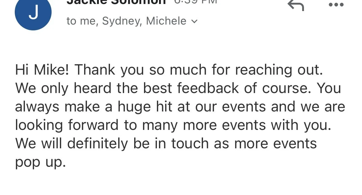 With a client list that's a who's who of celebrities and Fortune 100 corporations, Magic Mike is one of the highest-reviewed, most sought-after mentalists in the country, hired to create mind-melting memories people never forget. He’s the first magician to be named a Forbes 30 Under 30, a Business Insider 30 Under 30, and the youngest person ever to be admitted as a member of the world-famous Magic Castle, Mike blends classy new-school magic, mentalism and comedy, with old-school charm. All without the sequins.